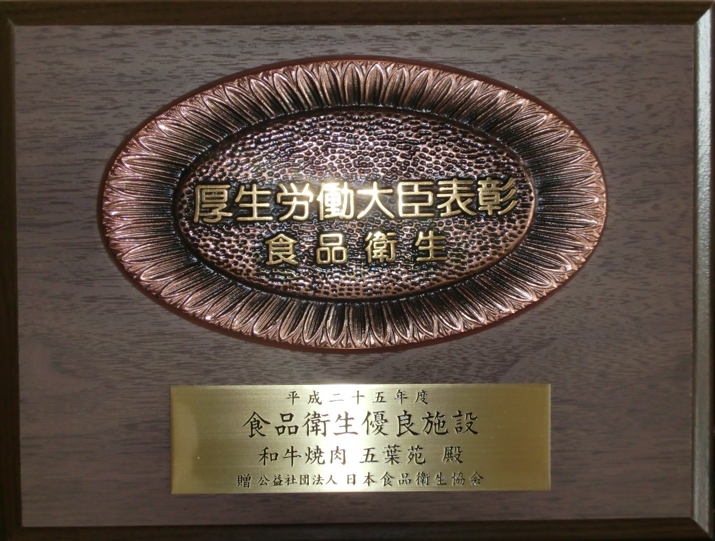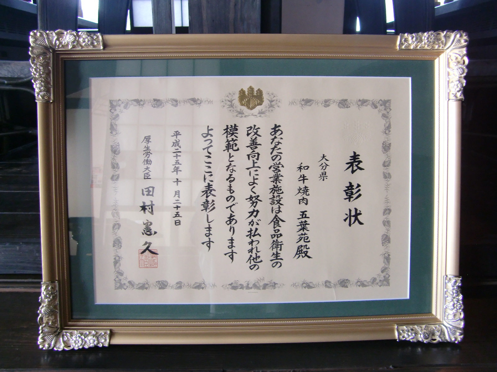 厚生労働大臣表彰状