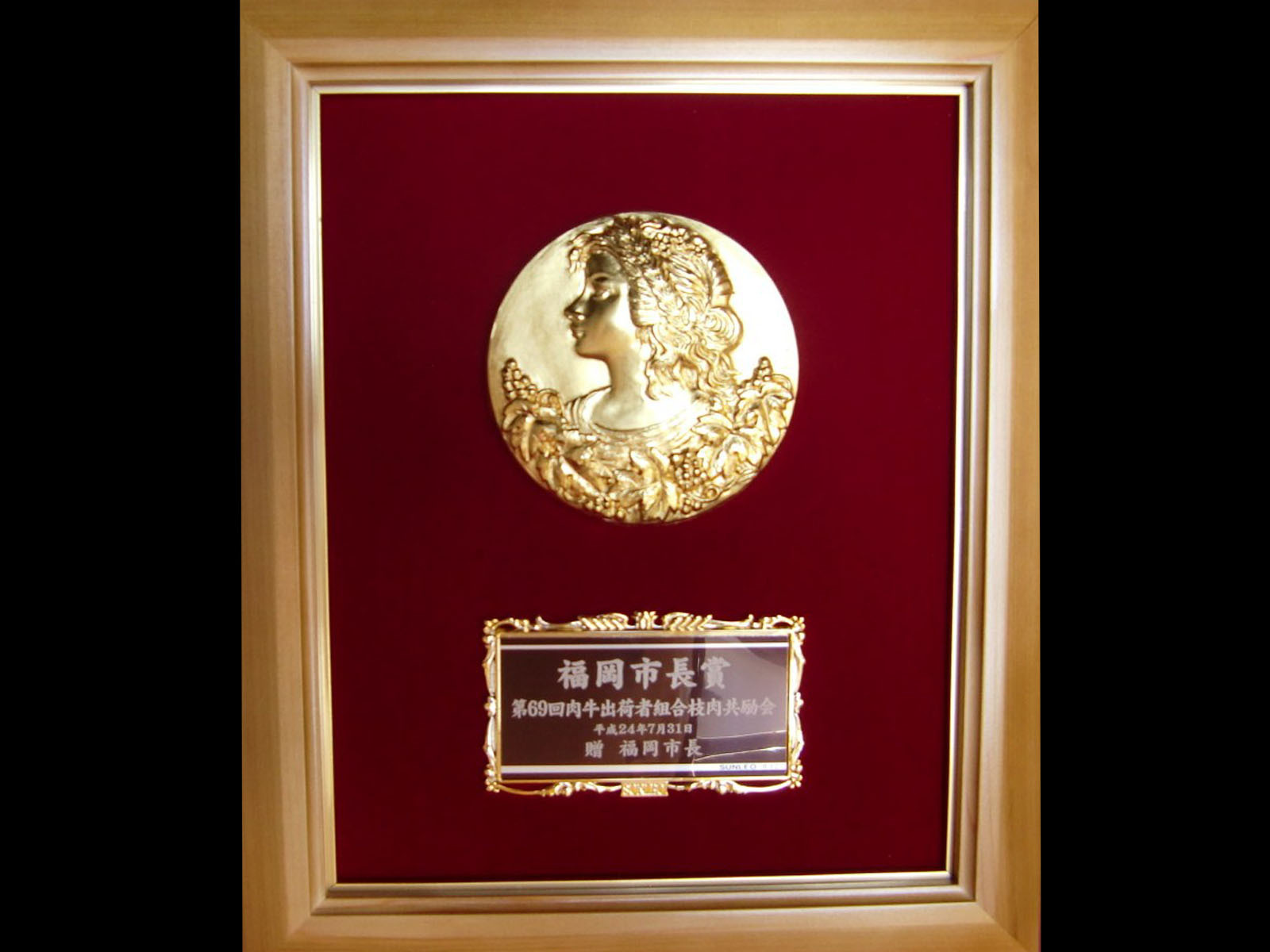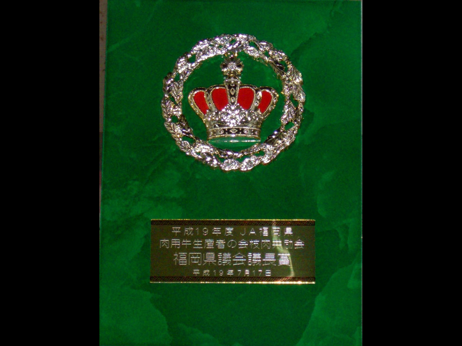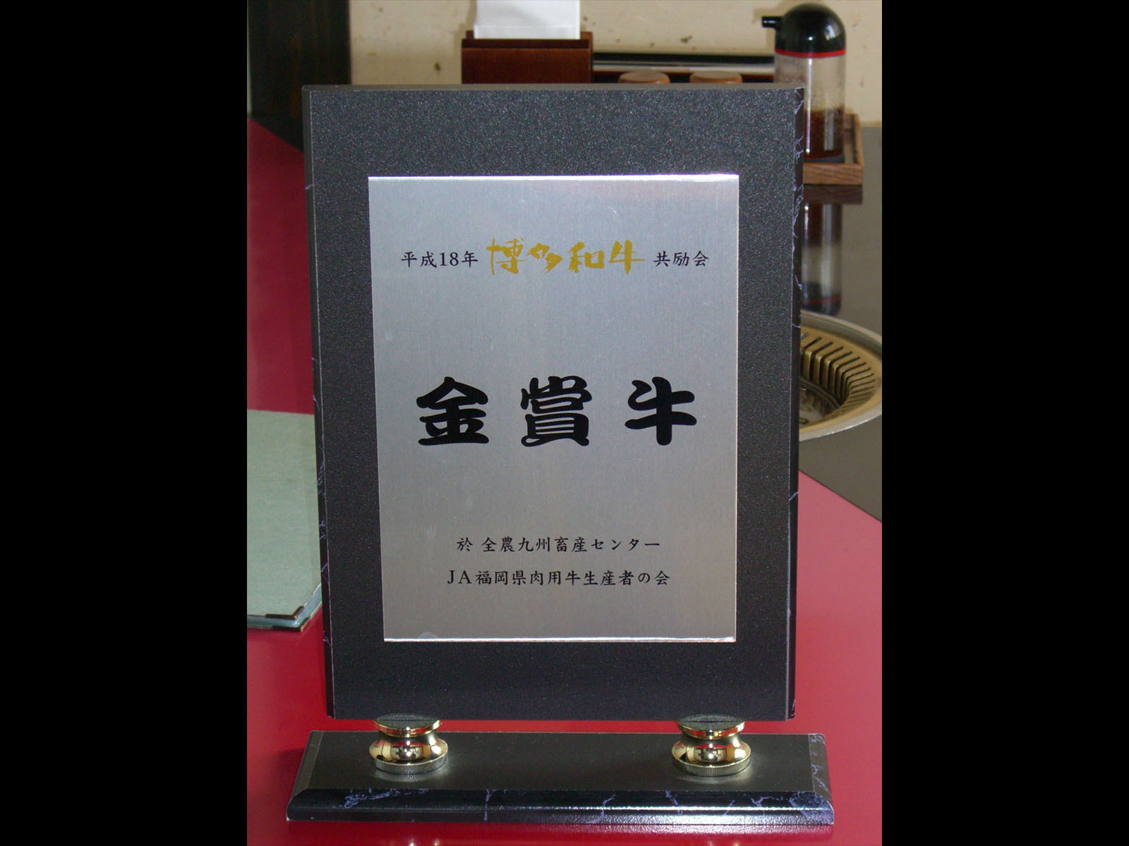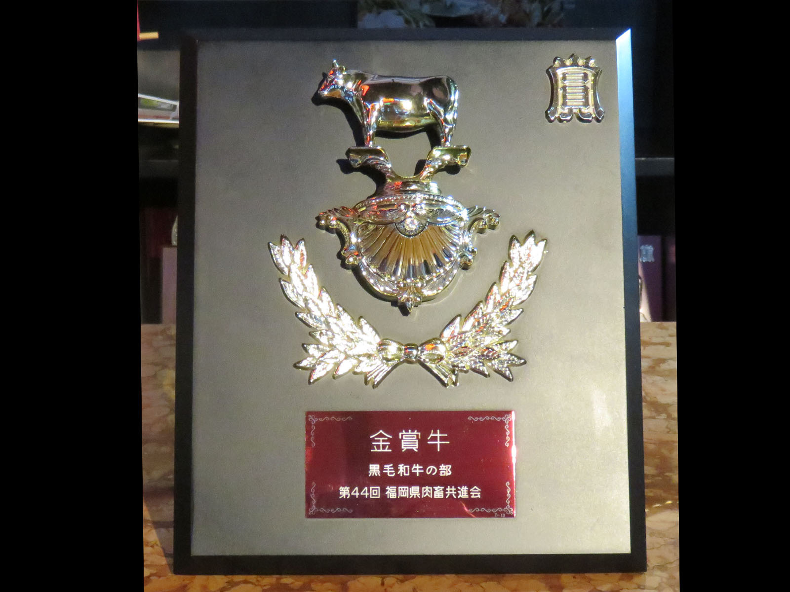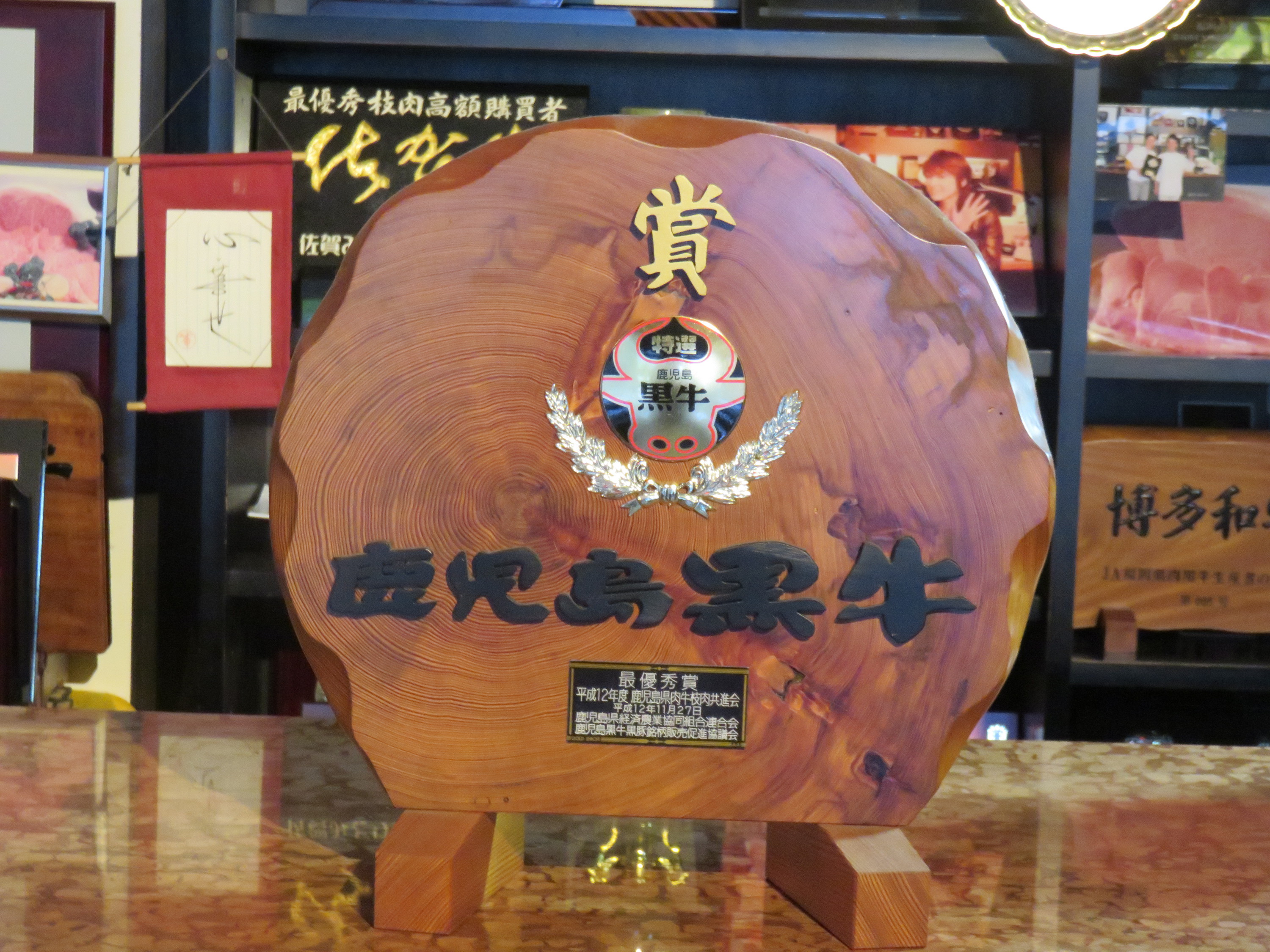 九州の最高賞受賞牛記念盾