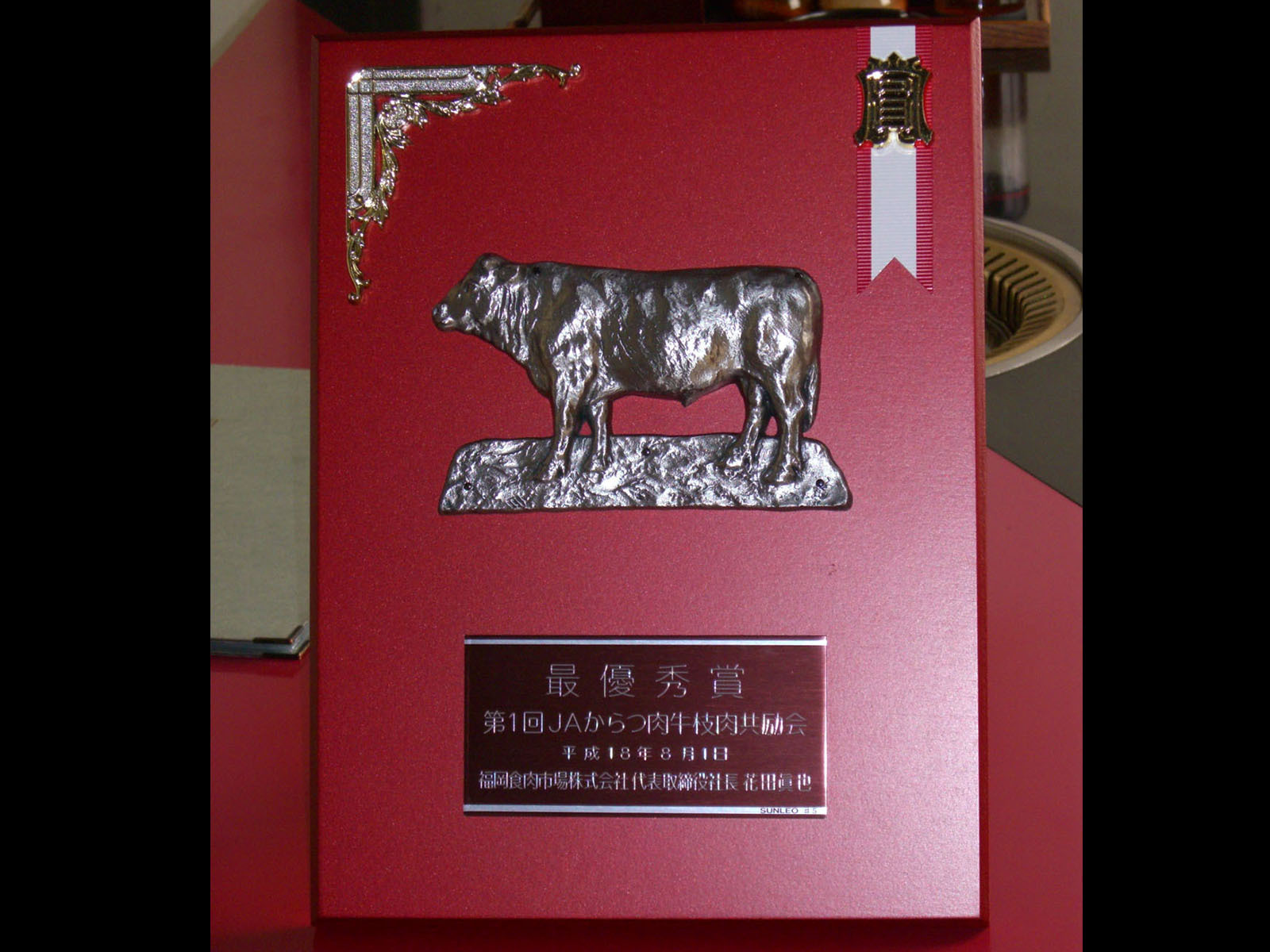最高賞受賞牛購入記念盾
